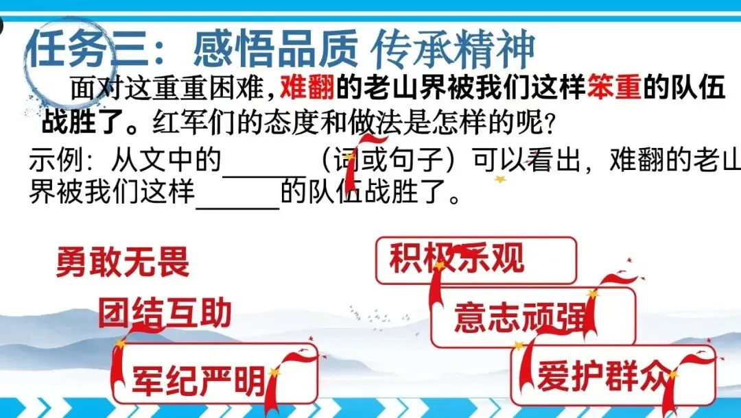本文是回忆长征的经典名篇,作者是新中国宣传事业的开创者陆定一老先生。这篇文章真实,生动地记叙了作者在长征中翻越“第一座难走的山”的过程,赞颂了红军英勇,坚强,乐观的精神品质。