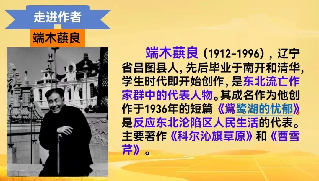这是一篇充溢着饱满、深沉的爱国热情的抒情散文,作者是东北流亡作家群的代表人物端木蕻良。它以倾诉式的语言表达了作者对沦陷十年的关东原野的怀念,赞美和甘愿为其牺牲一切的决心。
