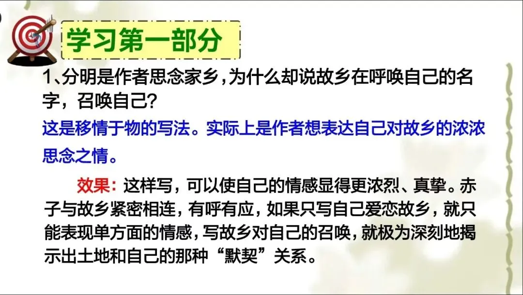 这篇课文在艺术上体现了端木蕻良浓郁的抒情风格与独特的抒情方式,如直接倾诉对土地的热爱、怀想、眷恋,并且将土地拟人化,以“她”而不是“它”相称,将土地是自己母亲的感情表达得十分明显。