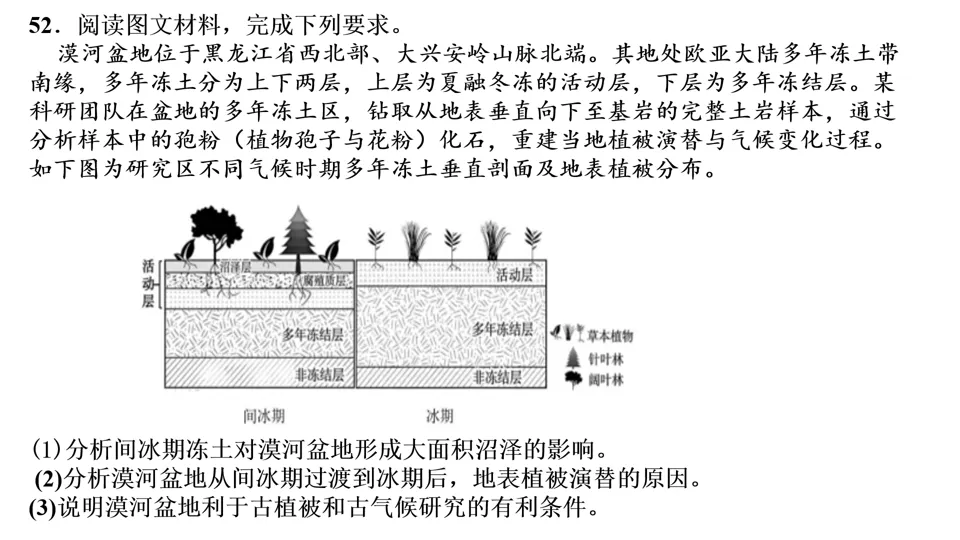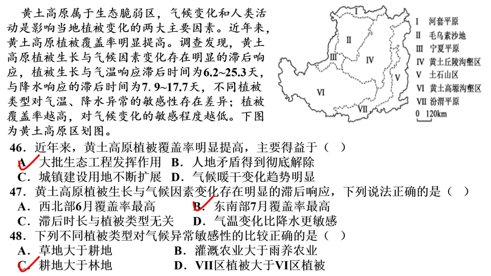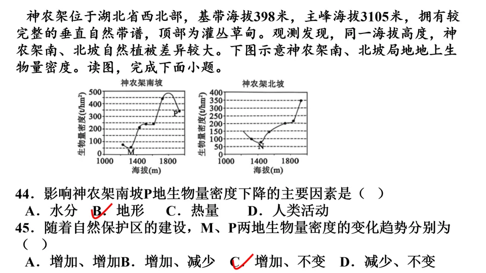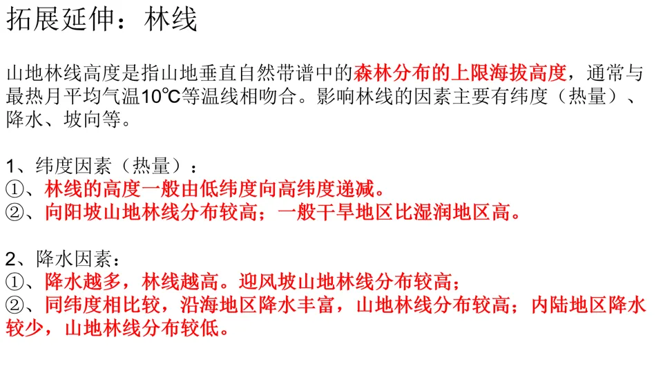 分析了林线和树线的区别,以及影响因素。并处理完了学案上的剩余题目。