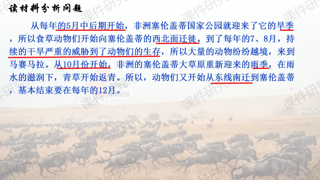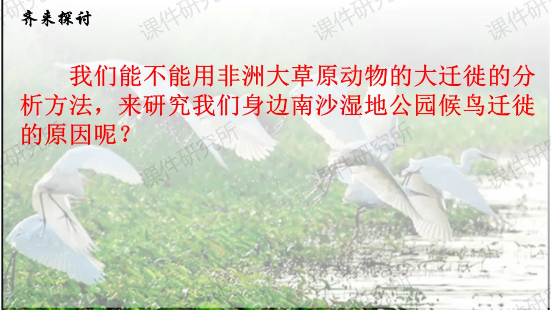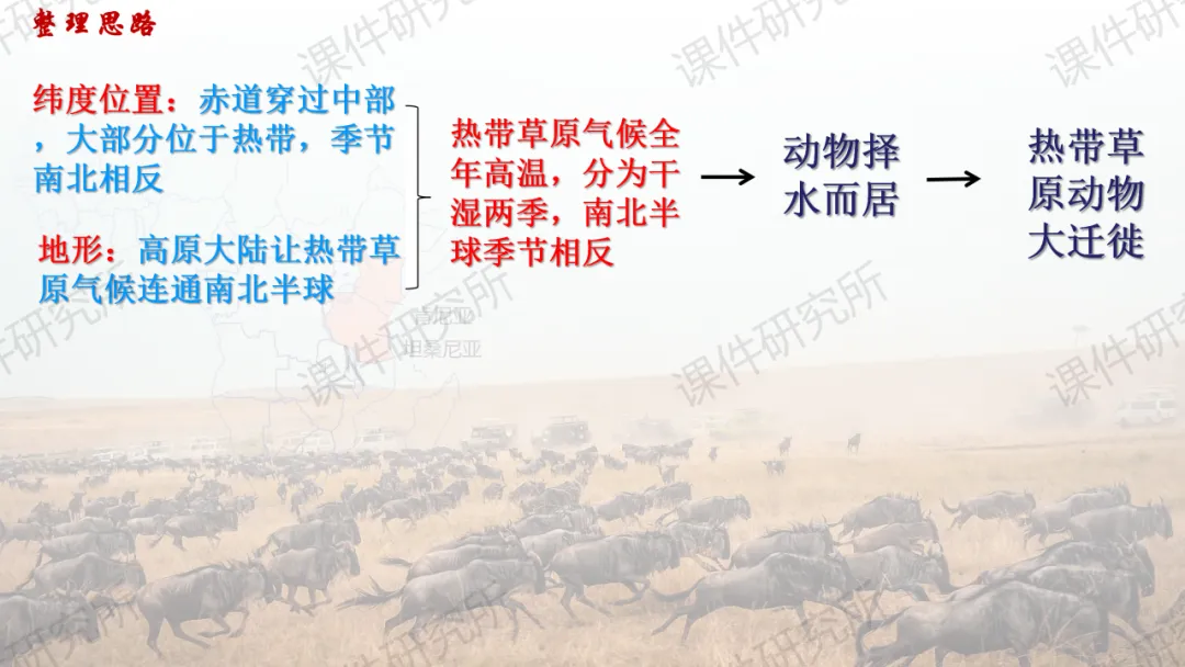 今天分享的是一个区级一等奖课件《撒哈拉以南非洲》,课件以东非动物大迁徙为核心情境,围绕纬度、气候、地形等要素设计问题链,引导学生探究迁徙成因;通过南沙湿地公园候鸟迁徙案例实现知识迁移,结合中考真题实战检验;融入人地协调观,设计课外实践作业,全程以小组合作、多元评价落实地理四大核心素养培养。