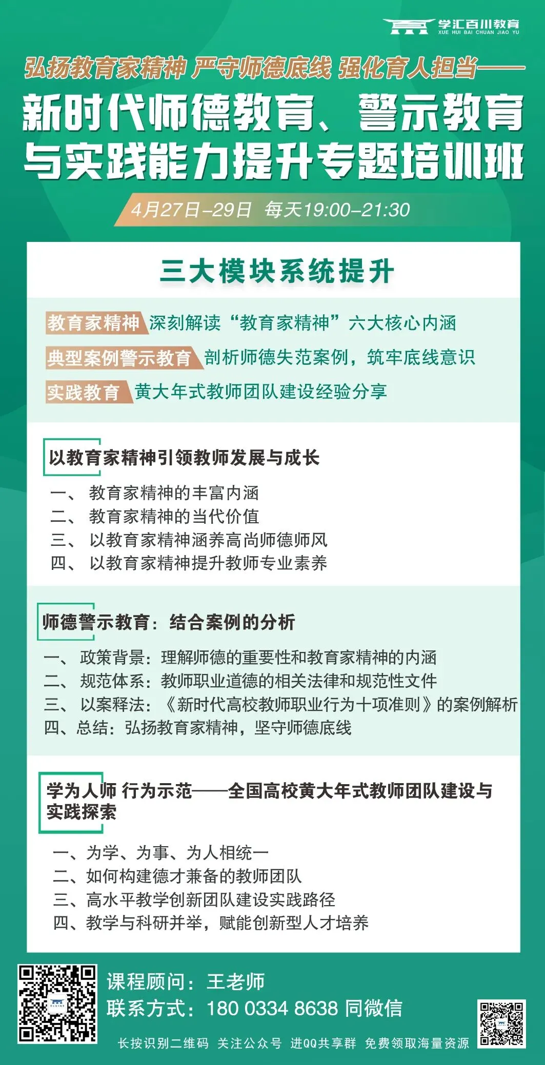 【4月27日-29日•线上】弘扬教育家精神严守师德底线强化育人担当—— 新时代师德教育、警示教育与实践能力提升专题培训班