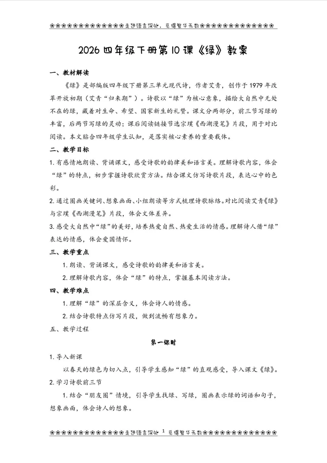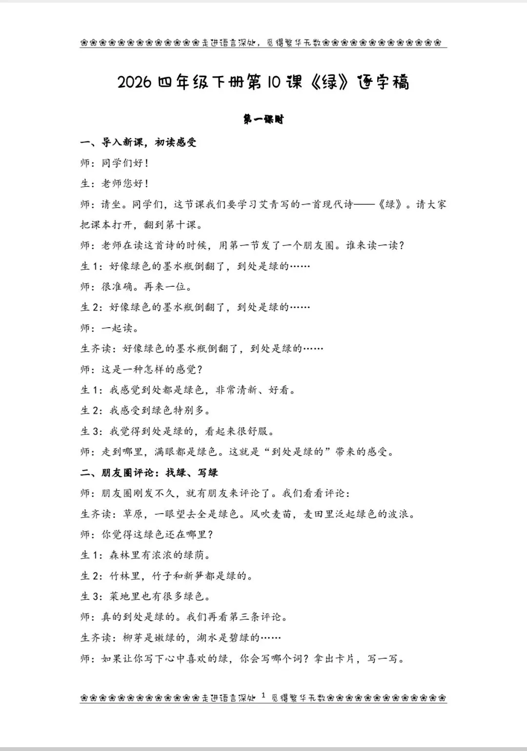 四下第10课《绿》课件@教案@逐字稿