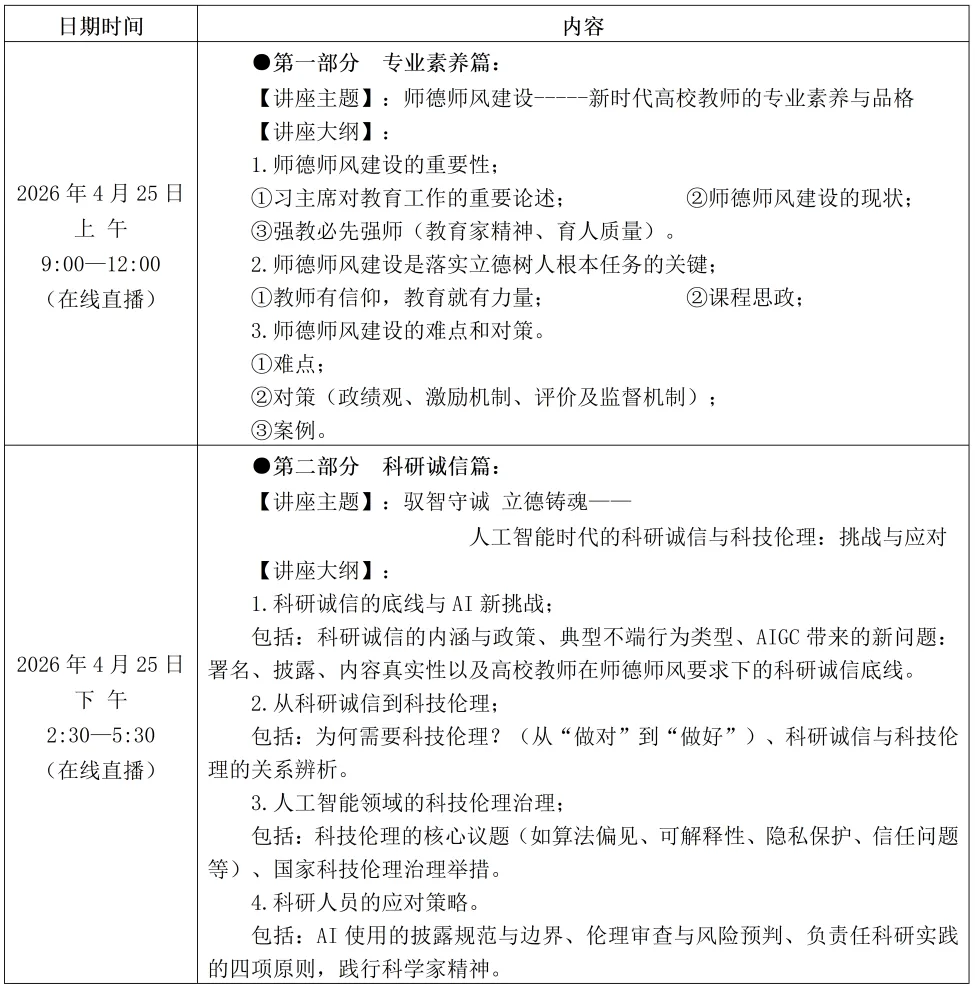 新时代高校教师师德师风专业成长科研伦理建设专题培训