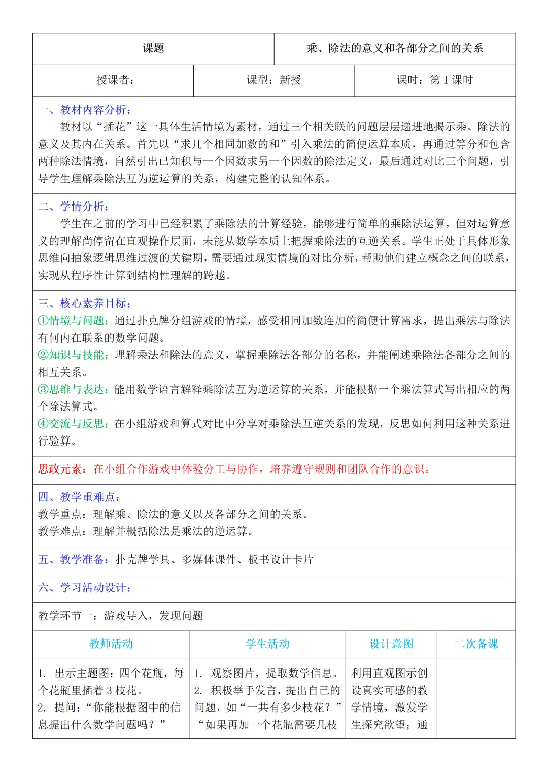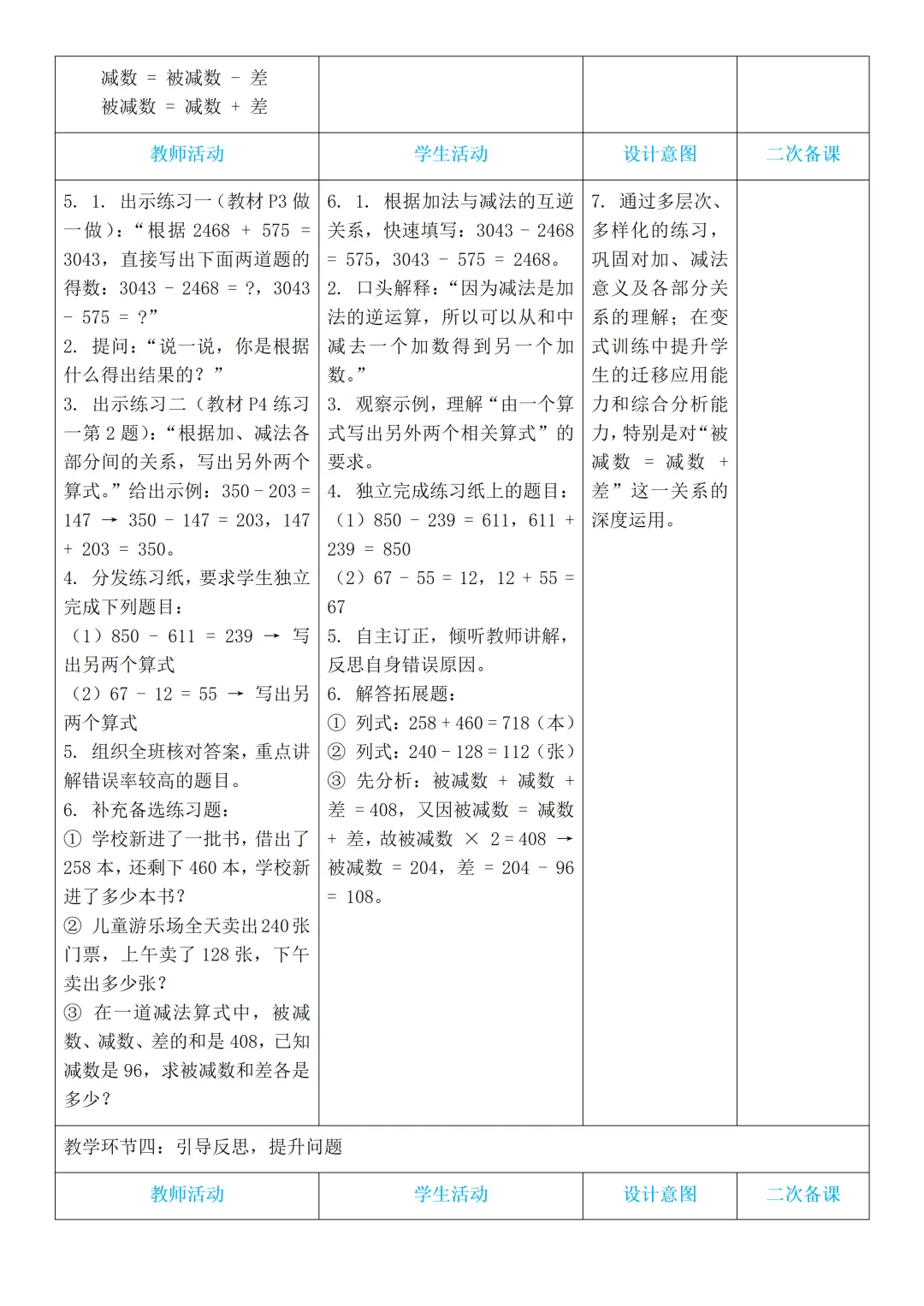 人教版数学四年级下册核心素养教案含反思+单元整体设计共3套