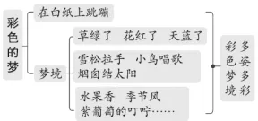 (1)教师提出要求:朗读第3小节,思考“彩色的梦”中还有哪些景物。