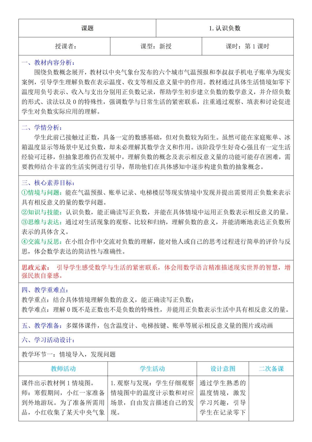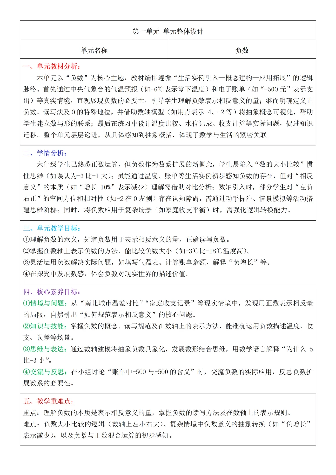 人教版数学六年级下册核心素养教案含反思+单元整体设计共3套
