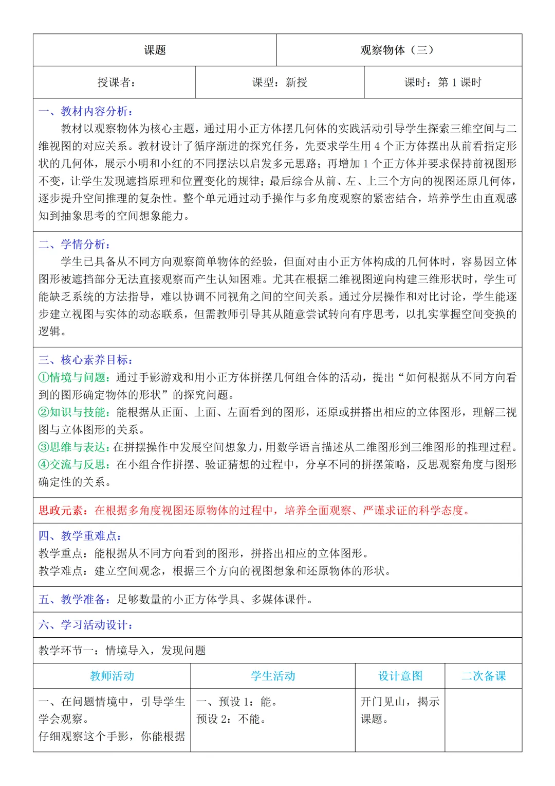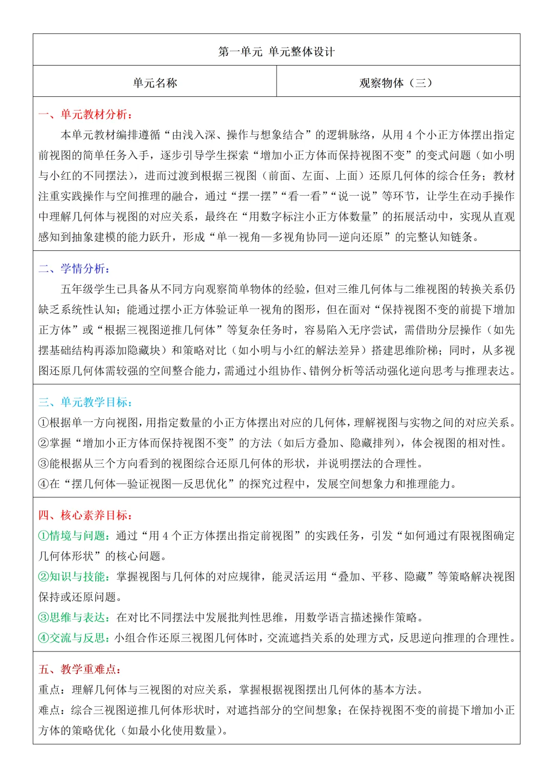 人教版数学五年级下册核心素养教案含反思+单元整体设计共3套