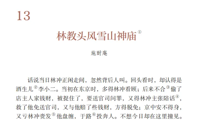 林冲赶到跟前把那后生肩胛只一扳过来,喝道:“调戏良人妻子当得何罪!”恰待下拳打时,认得是本管高太尉螟蛉之高衙内。