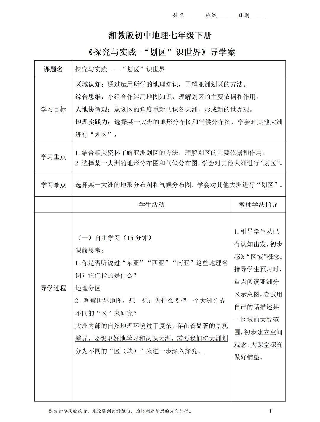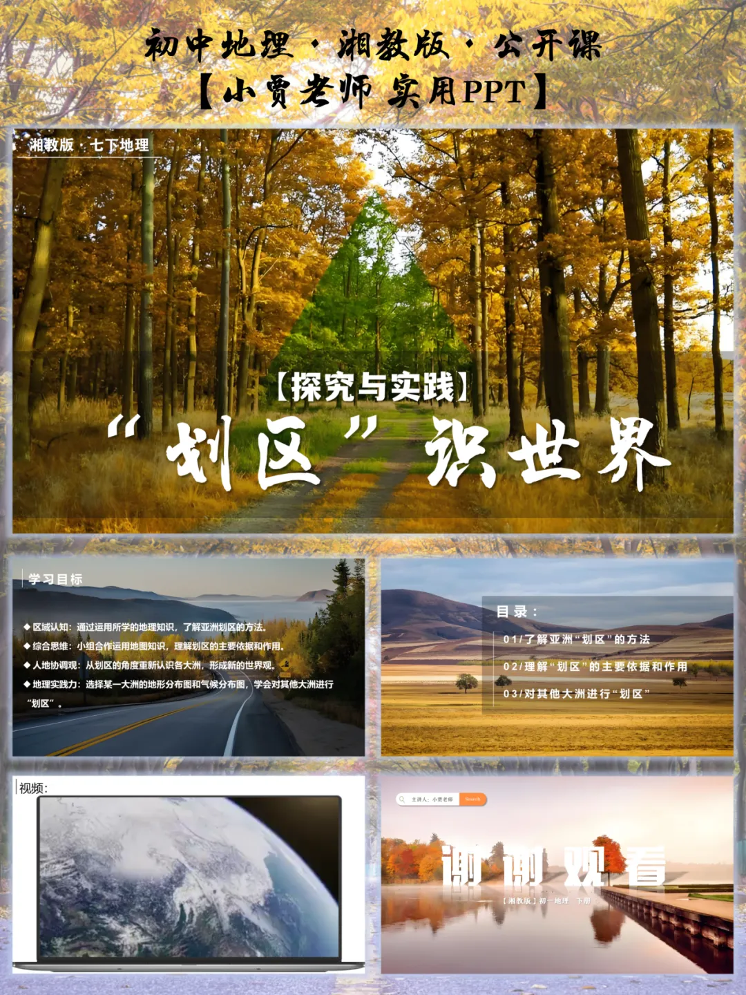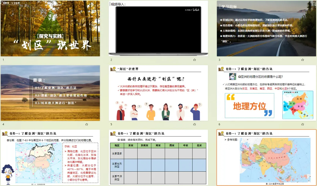 今日重点推荐湘教版七下地理《探究与实践——“划区”识世界》20页精品课件聚焦教学实效。