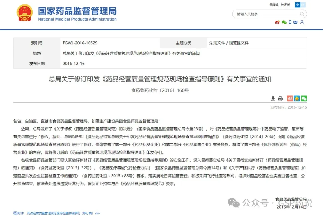 2016年12月16日国家药品监督管理局发布了《药品经营质量管理规范现场检查指导原则》(修订稿),距今已将近9年时间。