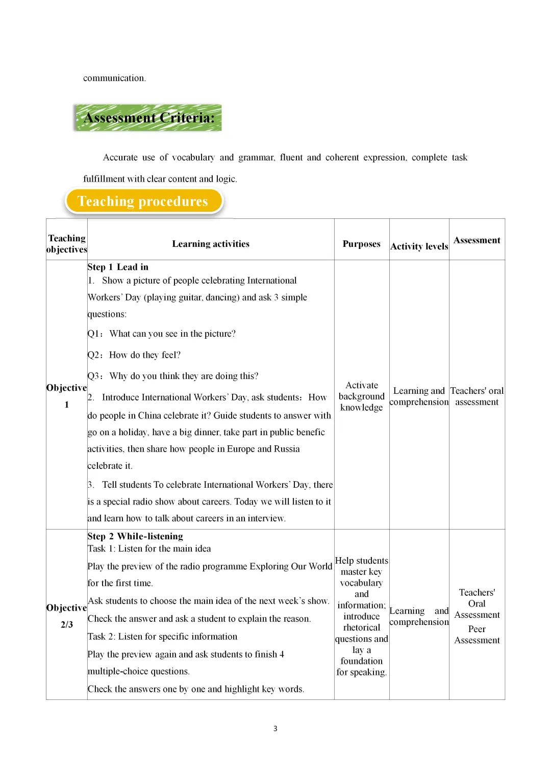 Developing ideas(Listening and speaking)