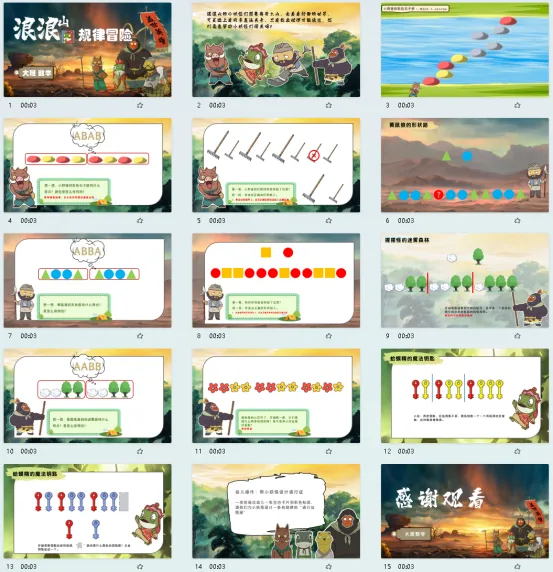 依据《3-6岁儿童学习与发展指南》中“幼儿在对自然事物的探究和运用数学解决实际生活问题的过程中,不仅获得丰富的感性经验,逐步发展逻辑思维能力”的指导精神,本次活动以“浪浪山小妖怪”为主角,通过闯关游戏的形式,引导幼儿在情境中发现、感知并创造规律,提升观察、比较、推理和分类能力,激发对数学活动的兴趣,促进思维发展。
