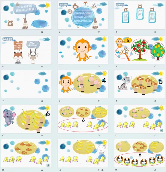 1.认识数字6,能将数字与同等数量的物体进行对应。