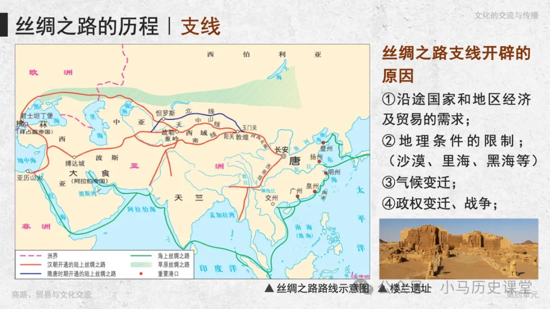 大家好,我是小马老师,这次为大家带来的是高中历史选必三的第9课《古代的商路贸易与文化交流》。