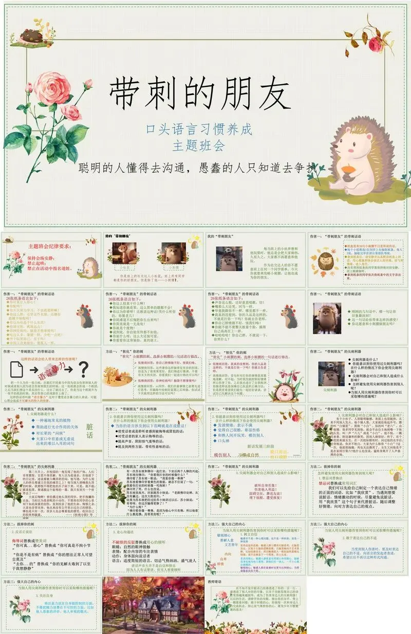 【中小学】习惯养成教育主题班会ppt课件“带刺的朋友”【从“语言暴力”到“走心沟通”—一节让全班学生学会好好说话的班会】(含文稿)