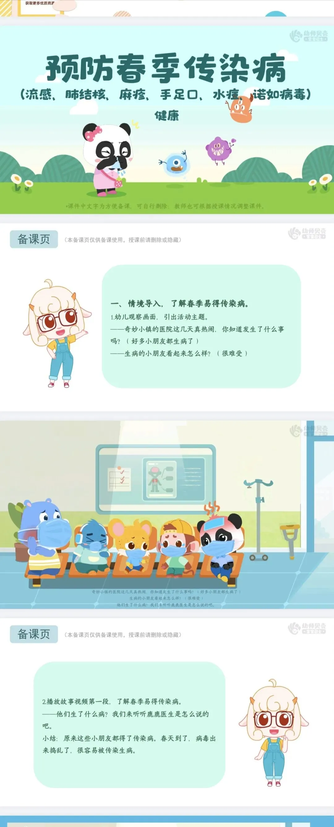 公众号后台回复【预防春季传染病PPT】,即可获取幼师贝壳完整课件。