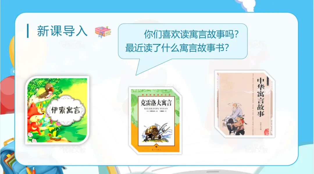 3.能感受阅读寓言故事的快乐,乐于与大家分享课外阅读的成果。