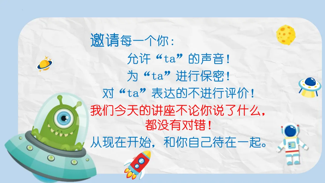 - 关于“表达”: 重点强调PPT最后的寄语——“沉默换不来别人的帮助”,鼓励学生建立良好的沟通习惯。