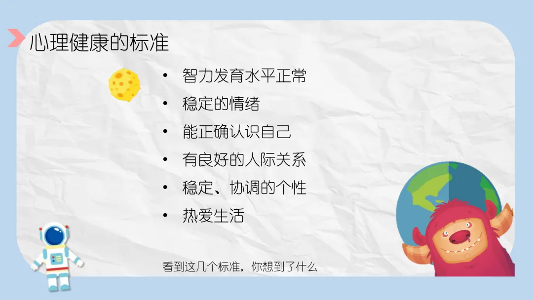 - 心理健康的标准:
