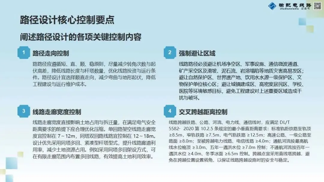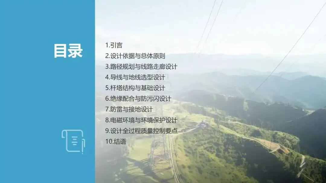 为进一步规范220kV架空输电线路设计工作,强化设计人员的规程意识,提升设计标准化、规范化水平,规避设计隐患,结合DL/T 5582-2020、DL/T 5486-2020等国家及行业标准,以及南方电网相关企业标准,特撰写本课件,系统梳理线路设计各关键环节的核心要求、规程限值及实操要点,为支部相关工作开展、工程设计及审查提供务实指导,助力新型电力系统建设。
