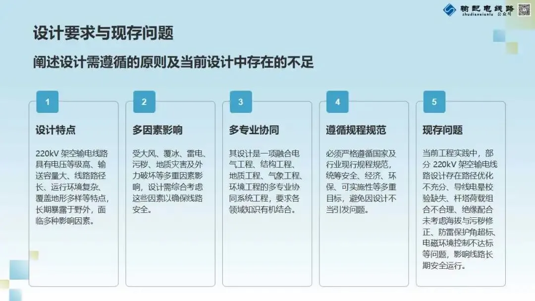 220kV架空输电线路作为区域电网的核心枢纽,承担着省网与地市电网互联、大型电源点电力外送、负荷中心供电的关键职能,其设计质量直接关系电力系统安全稳定运行,影响工程全生命周期的经济效益、环境效益及运维安全性。当前,部分工程设计中存在规程执行不到位、关键指标把控不严格、设计偏差等问题,易引发线路闪络、倒塔、断线等安全隐患,影响电网可靠供电。