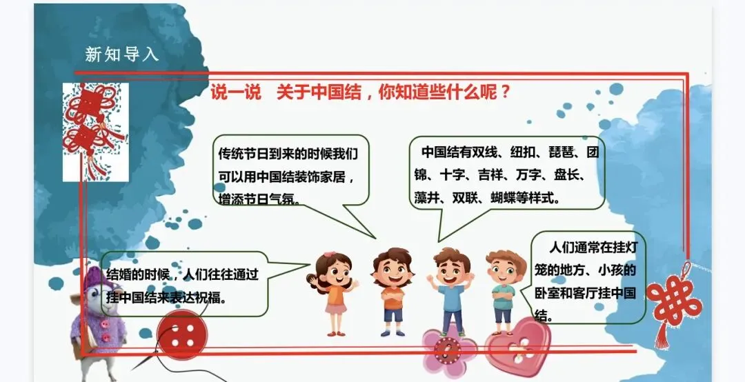 4.劳动精神:通过实践活动,了解中国结的悠久历史和文化内涵,养成热爱劳动、不怕困难的劳动精神。