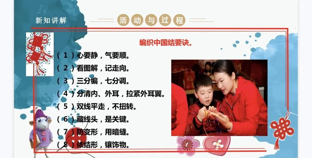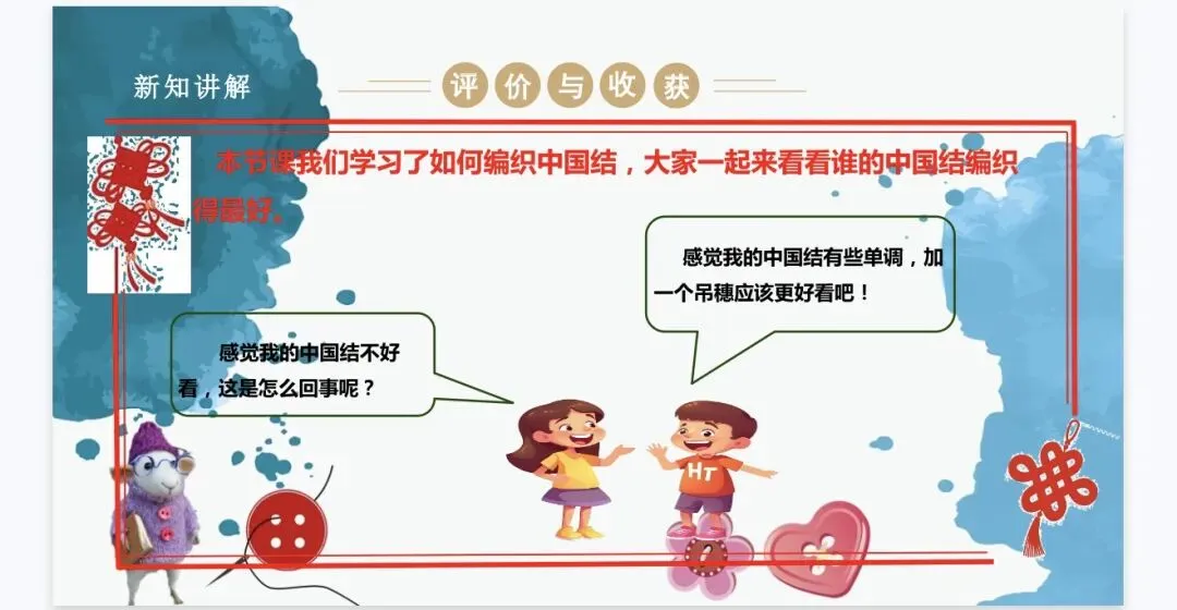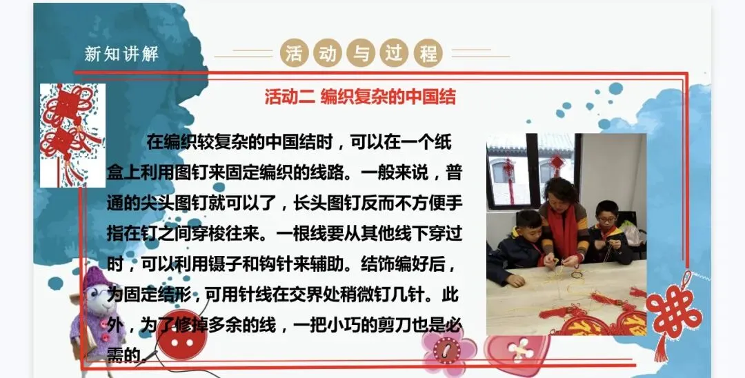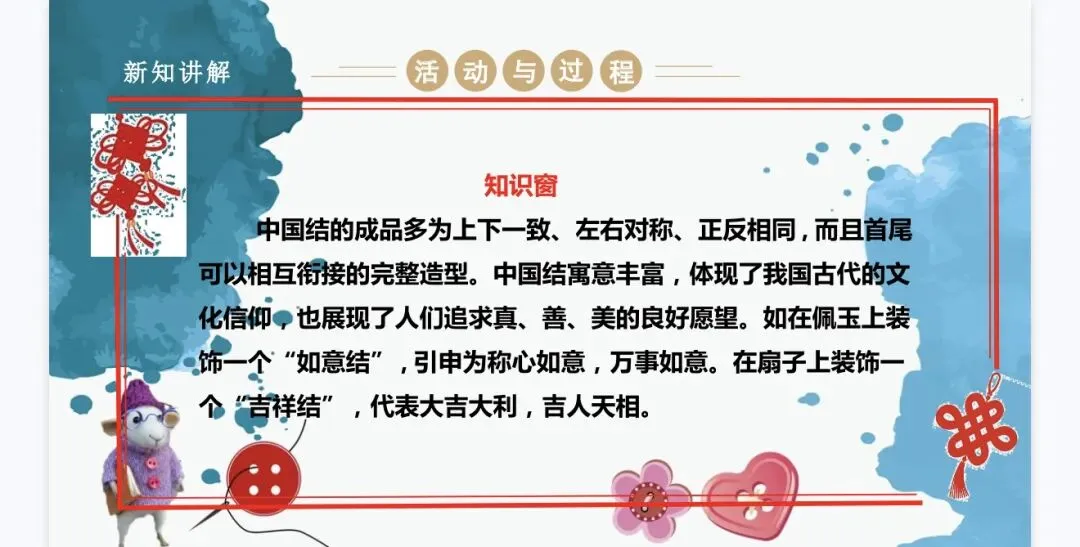 难点:通过编织中国结的实践活动,懂得传承中国传统文化,明白中国结蕴含的重要寓意。