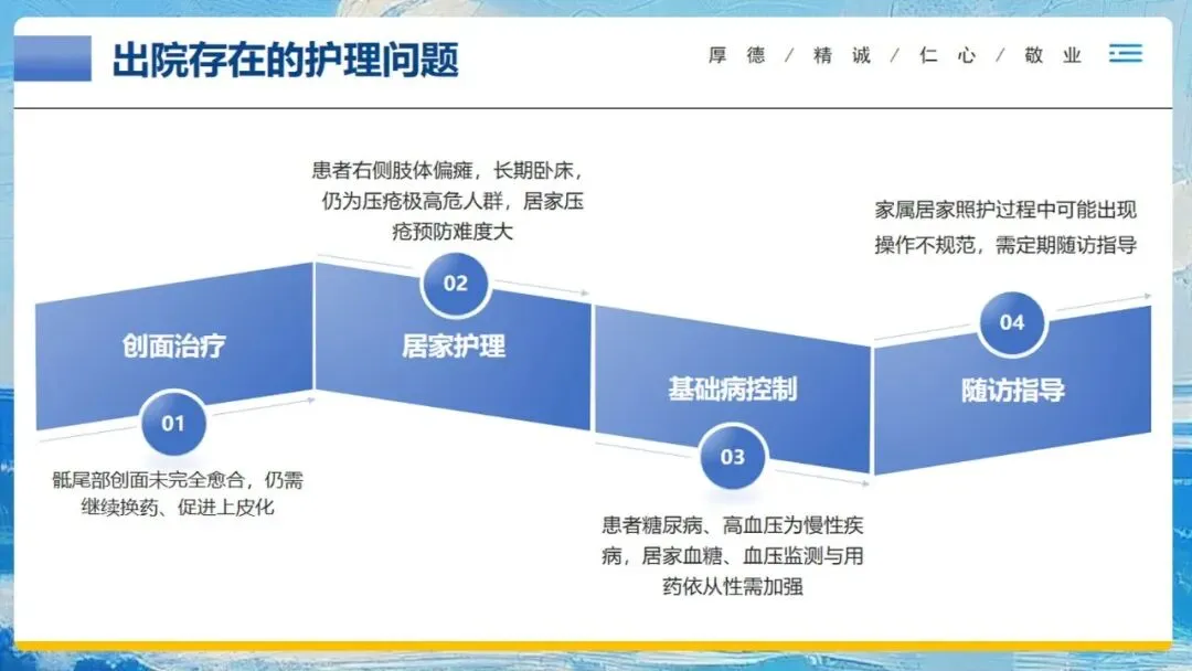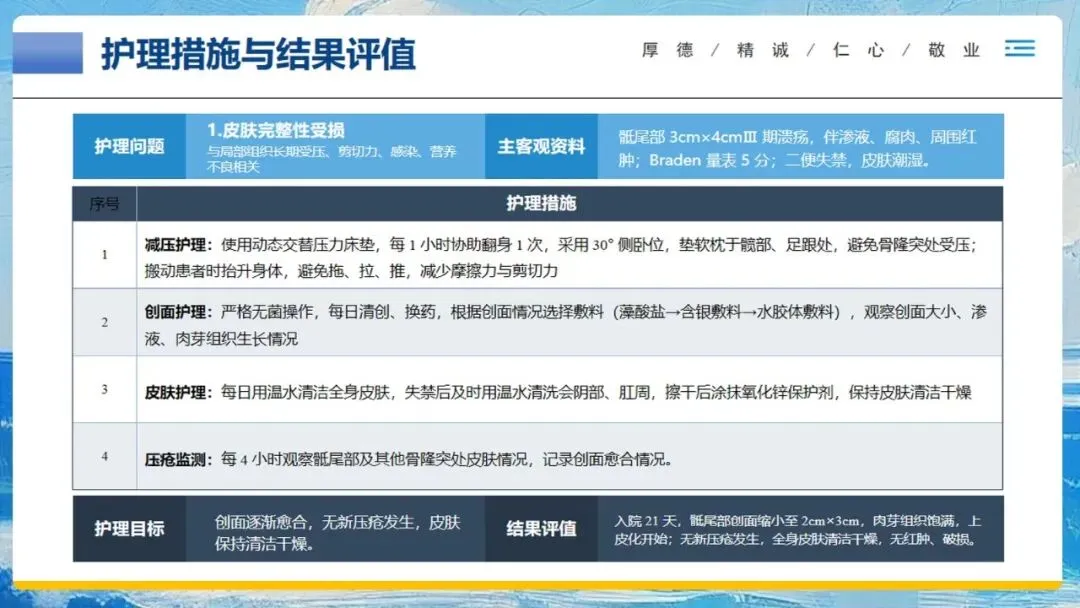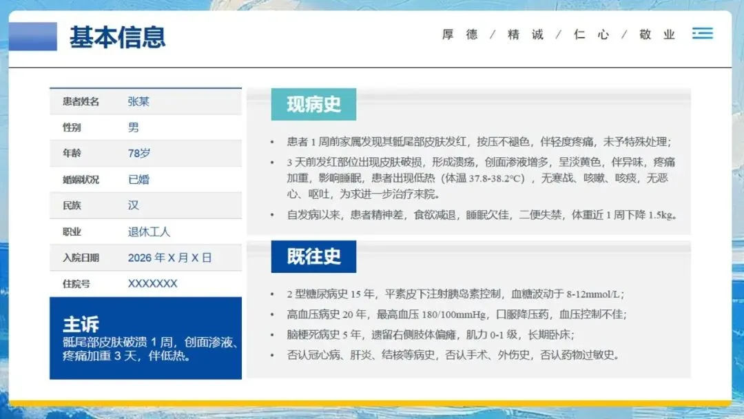 1 例褥疮患者的个案护理-ppt课件——骶尾部皮肤破溃 1 周,创面渗液、疼痛加重 3 天,伴低热