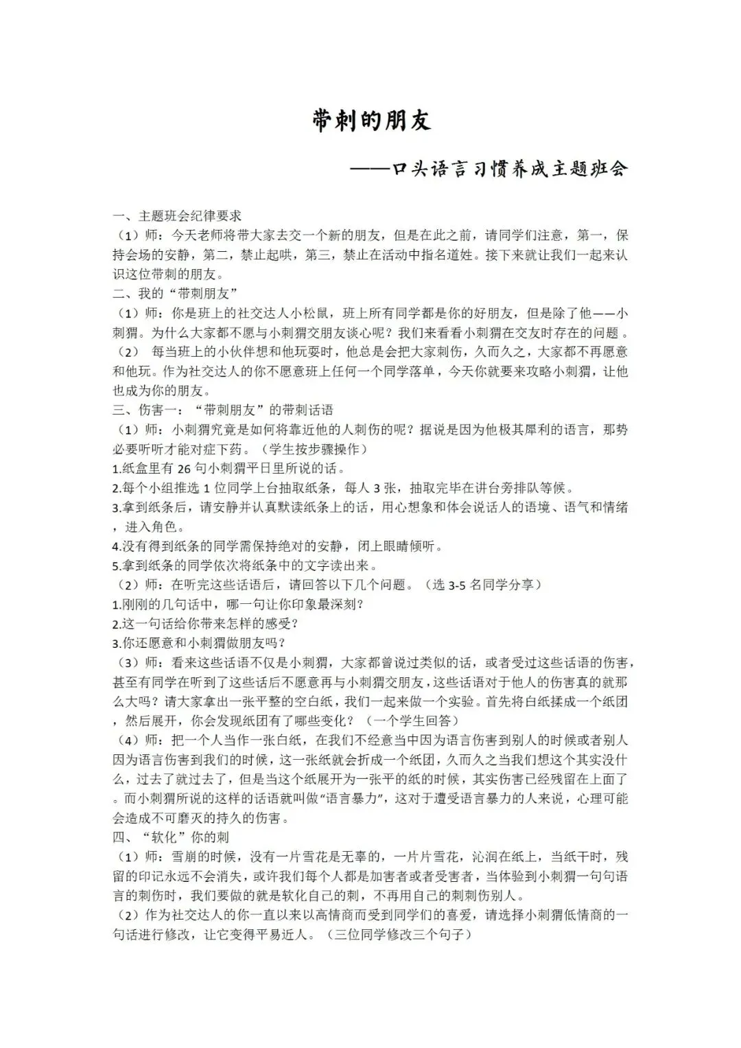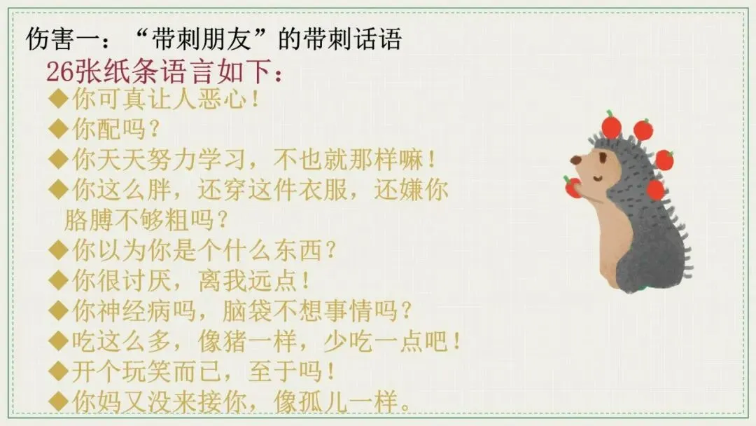 【中小学】习惯养成教育主题班会ppt课件“带刺的朋友”【一张纸折过之后折痕永远都在:这节班会课让孩子看见语言暴力有多痛】(含文稿)