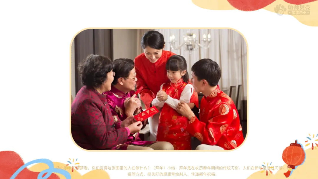 l感受拜年的意义,形成对中国传统习俗的认同感。