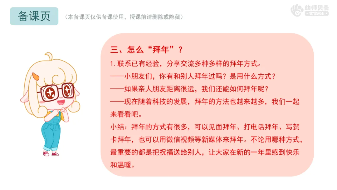 l知道拜年的由来,认识多种拜年方式。