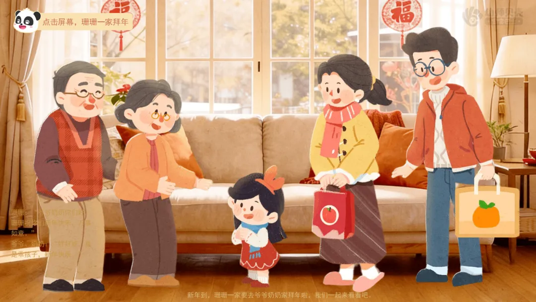 ——新年到,珊珊一家要去爷爷奶奶家拜年啦,我们一起来看看吧。