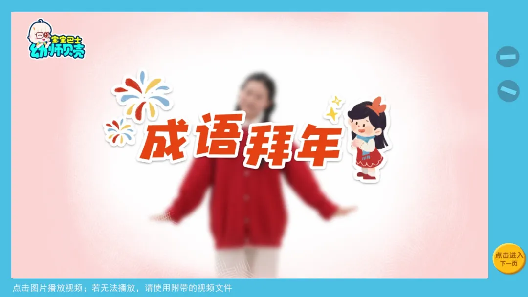 l课件准备:《拜年啦》PPT、《成语拜年》手势舞视频。