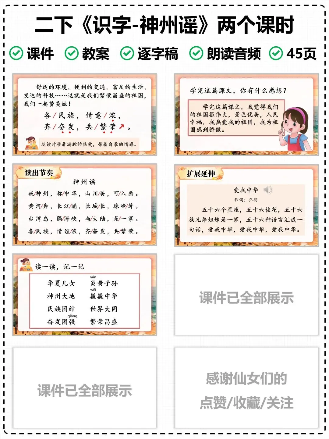 需要这份《神州谣》完整版课件的朋友,