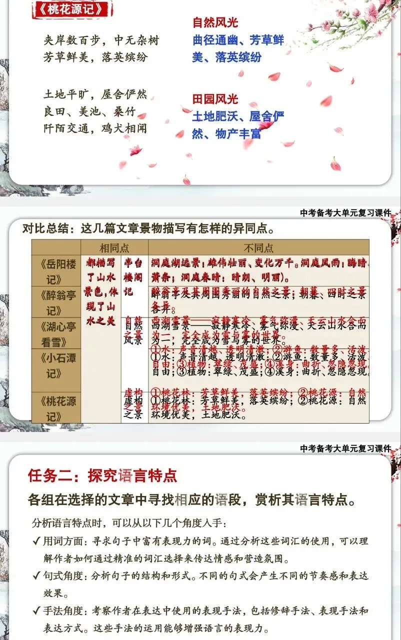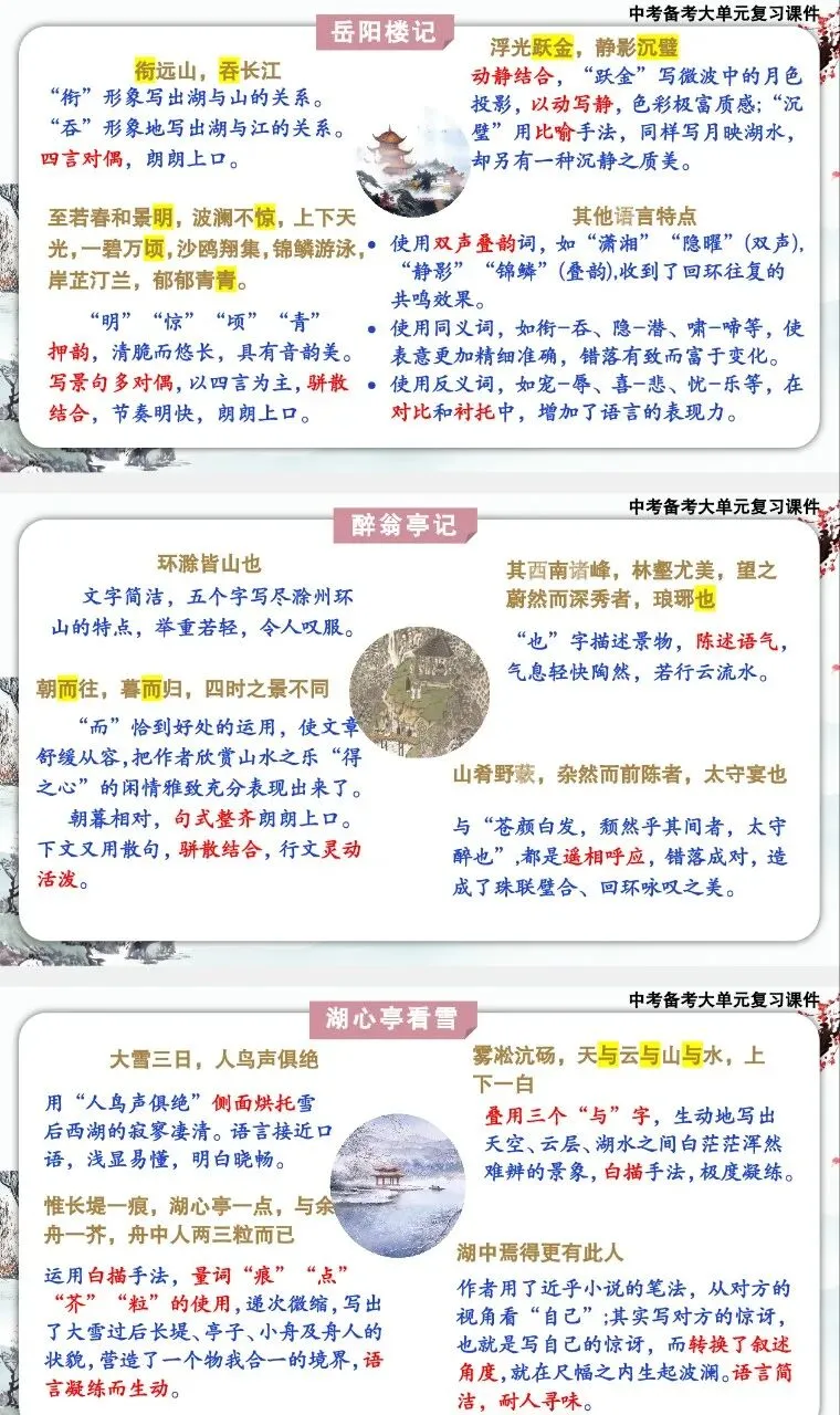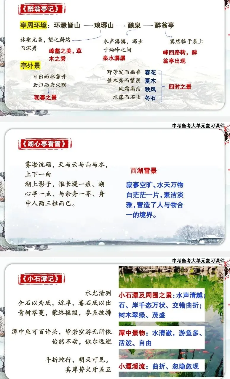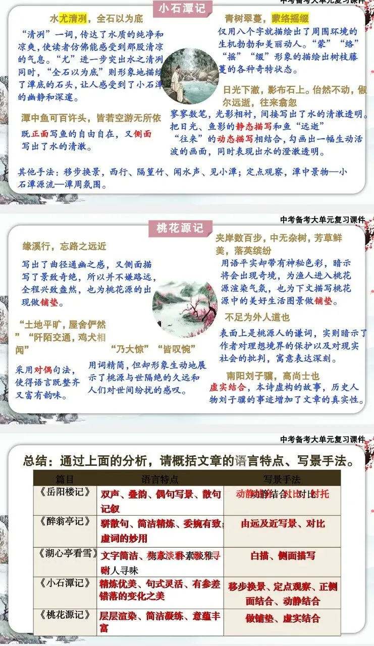 中考备考大单元复习课件——写景类文言文五篇整合复习