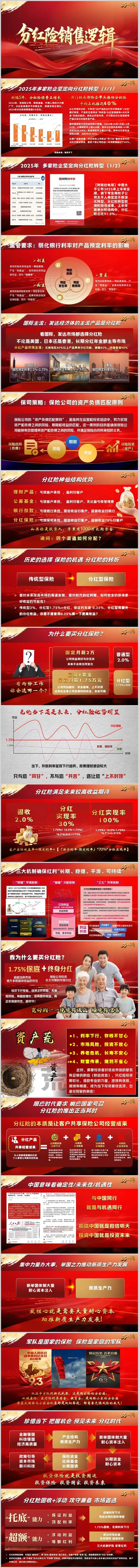 第一步:锚定“确定性”,建立信任。以“保本+固定收益”切入,强调写进合同的1.75%预定利率是无风险底线,抵御利率下行(当前存款利率持续走低,1.75%固收已属稀缺)。例如,对比“固定月薪2万但无增长”与“底薪1.75万+上不封顶奖金”的工作选择,客户更易理解“保底+弹性”的价值。