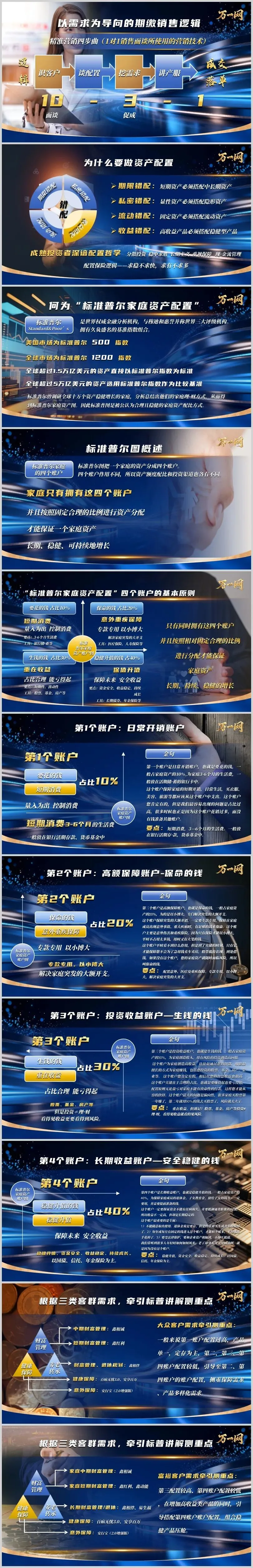 以标普图为框架的期缴销售逻辑,本质是“用专业配置替代单一推销”。理财师需跳出“卖保险”的思维局限,站在客户视角,通过“识客户-谈配置-挖需求-讲产服”四步曲,帮助客户建立“长期、稳健、专属”的财富管理认知。唯有如此,才能实现从“一锤子买卖”到“终身经营”的转变,真正成为客户信赖的“财富管家”。