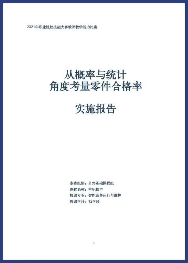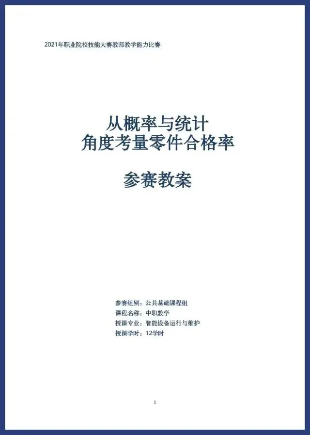 1.2024年教学能力大赛教学能力比赛参赛教案实施报告/数学/概率与统计初步//医学检验技术专业/12学时/公共基础课程组