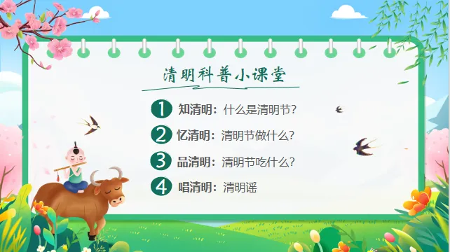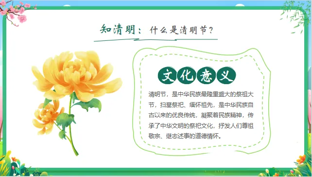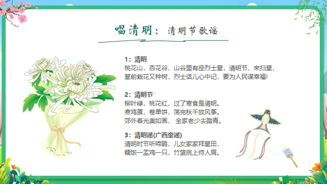 情感目标:感受春天的生机,懂得怀念先人、尊重生命,同时体验节日带来的文化氛围。