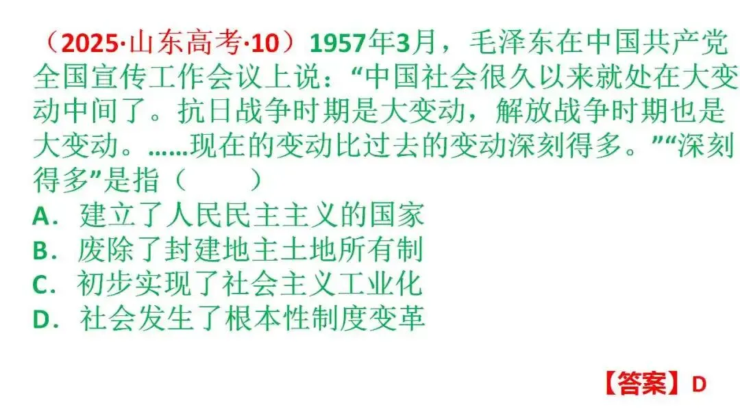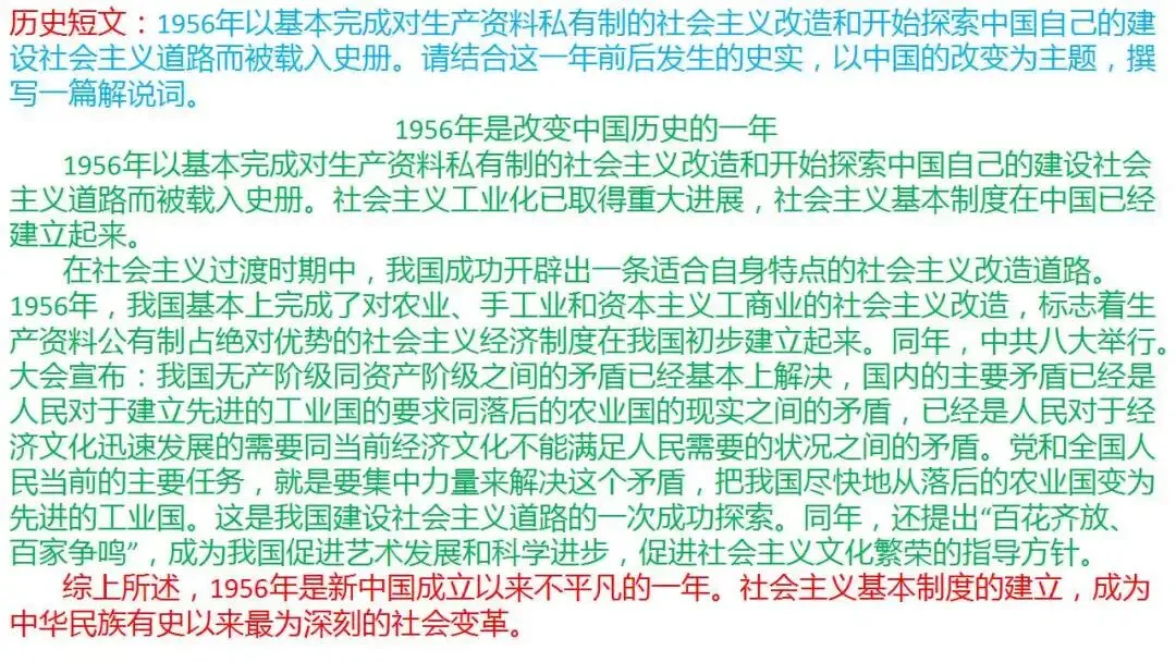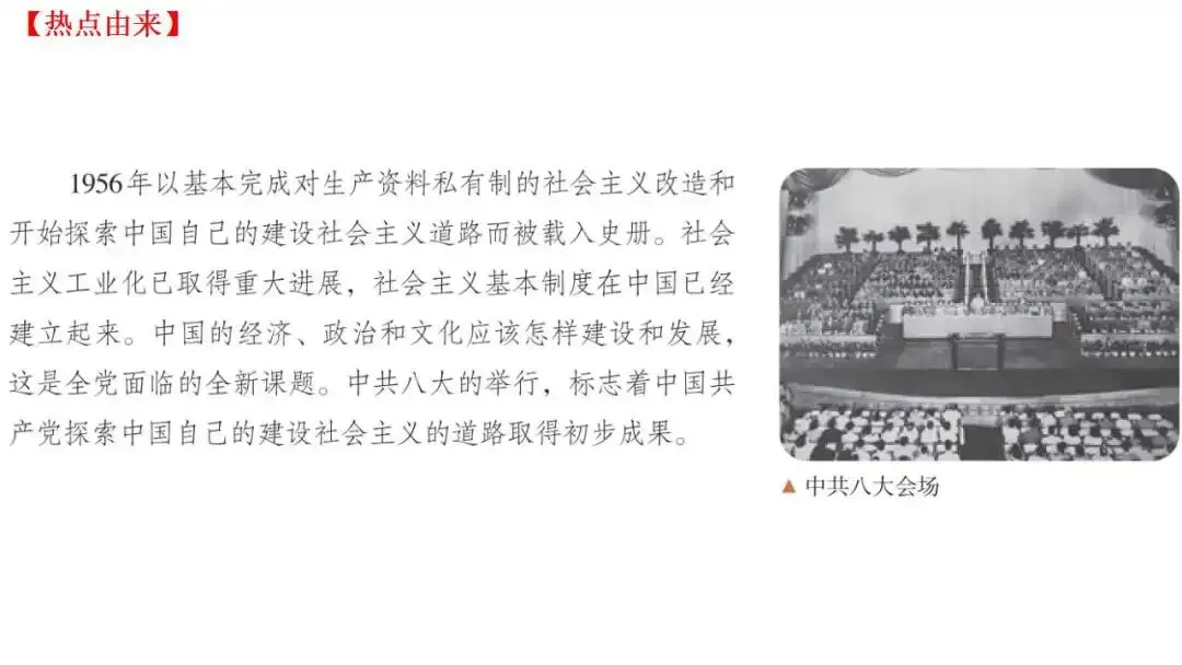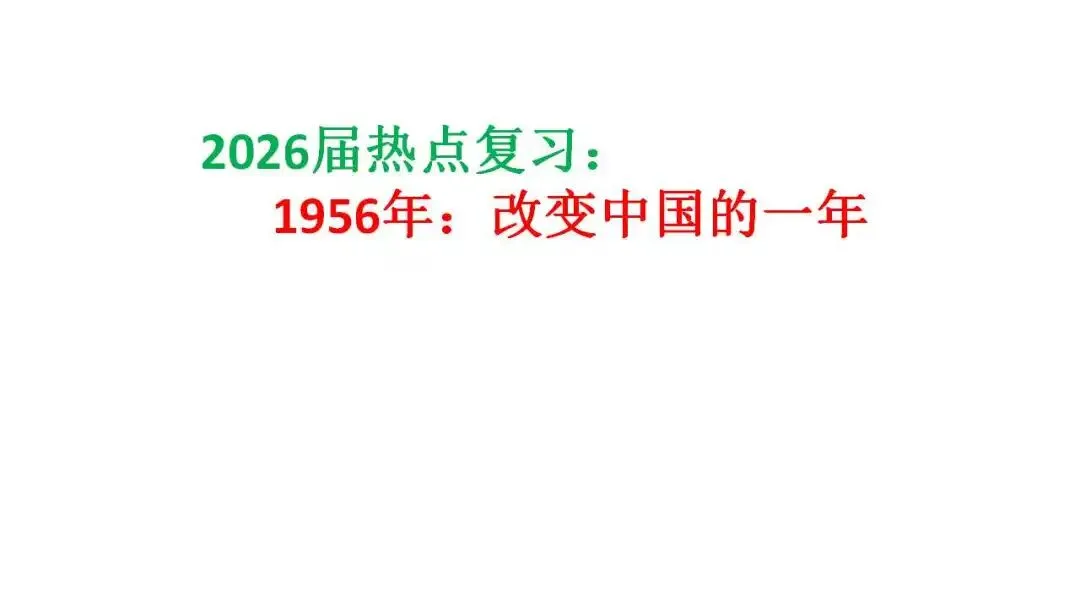 因为资料原创不易,耗费大量心血,所以还望尊重知识产权和劳动成果。如有需要(非免费赠送,谢谢),请后台私信作者,或者添加作者微信:有的。2026届考前冲刺热点课件合集分为第1辑和第2辑(5月发布)。其中第1辑,今天开始与大家见面。基于笔者对真题卷的研究和个人教学经验,既包含了2025年1月至今的重大国内外时事,也包含重要周年大事,还包含真题卷隐藏的规律,以PPT的形式呈现,将热点由来、知识梳理和真题(模拟题)训练等三个部分融为一体,供大家参考。内容如下:如需付费购买《2026届考前冲刺热点课件合集》(第1辑)电子版,可以通过公众号后台私信或微信作者即可。以下内容为《2026届考前冲刺热点课件合集》(第1辑)之《1956年:改变中国的一年》,供大家参考。如需购买《2026届考前冲刺热点课件合集》(第1辑),可以通过公众号后台私信或微信作者即可。1.《浙江选考题型专练合集》