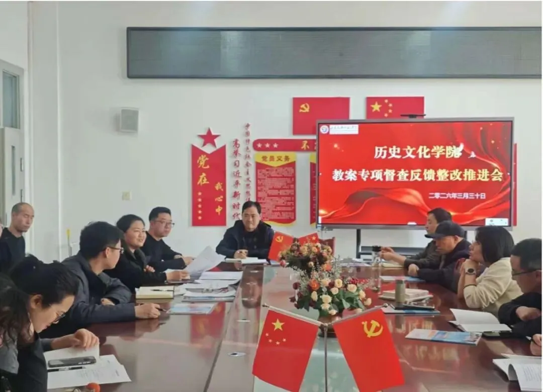 为落实学校教务处2025-2026学年春学期期初教学检查反馈意见,进一步规范教案管理、提升教学质量,2026年3月30日,历史文化学院召开教案专项督查反馈整改推进会,学院领导、教务办工作人员、各系负责人及全体任课教师参会。