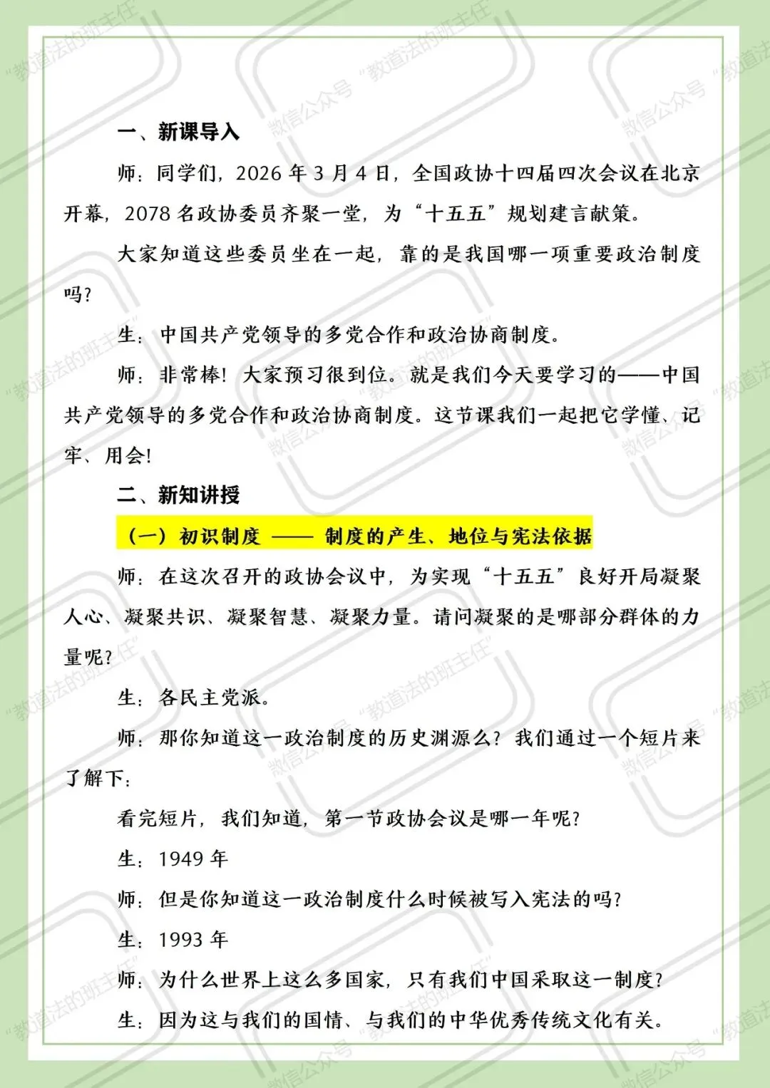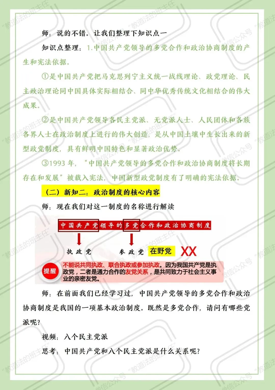 >配套教案|新教材八下道法5.2《中国共产党领导的多党合作和政治协商制度》