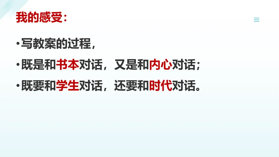 考虑了以上资源,我们的教学设计才可能成型。所以写教案就是吃一遍苦,用一遍心,功效可抵数年之浑噩。