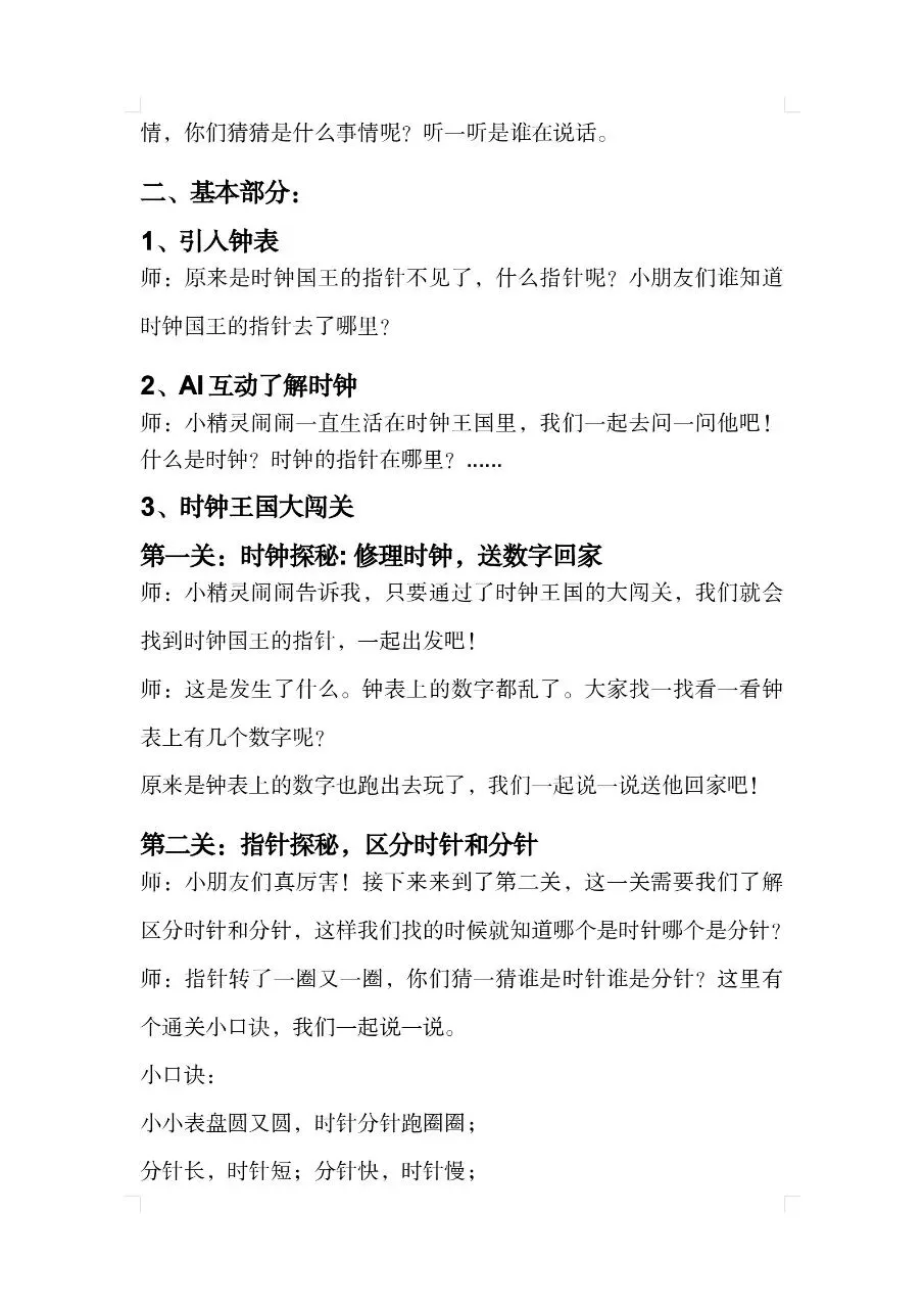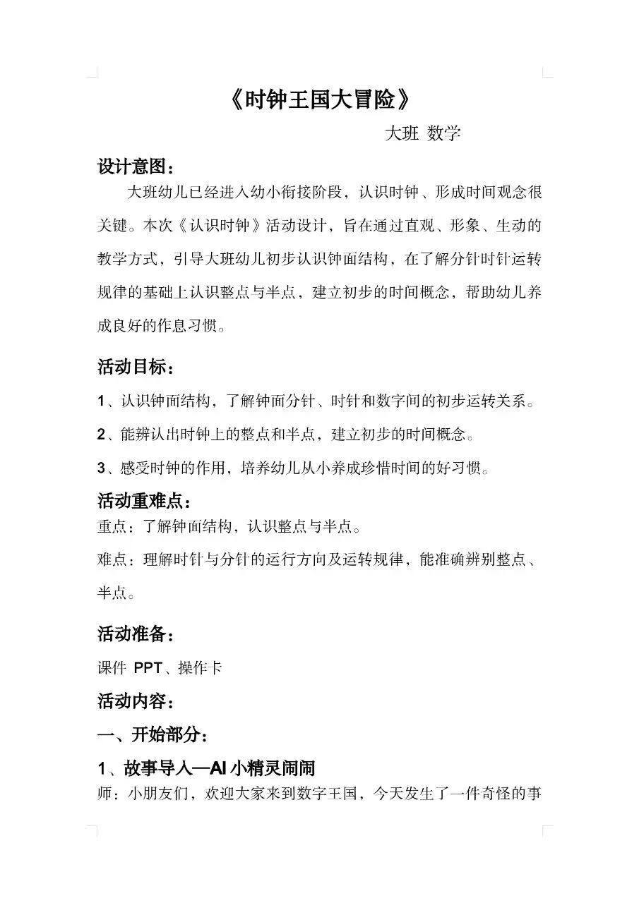 大班数学《时钟王国大冒险》教案