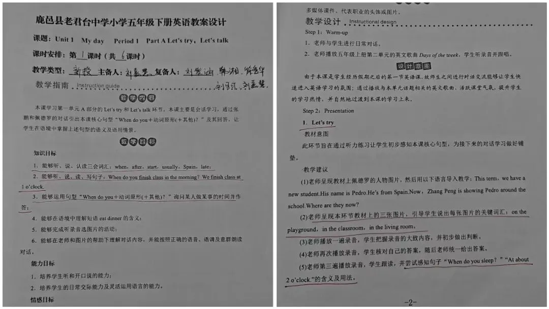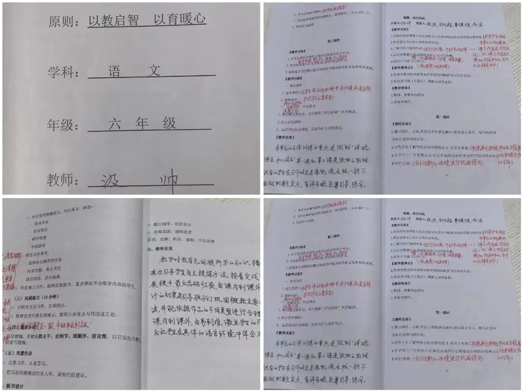 为杜绝教案与课堂“两张皮”,学校创新推出三色笔标注法:
