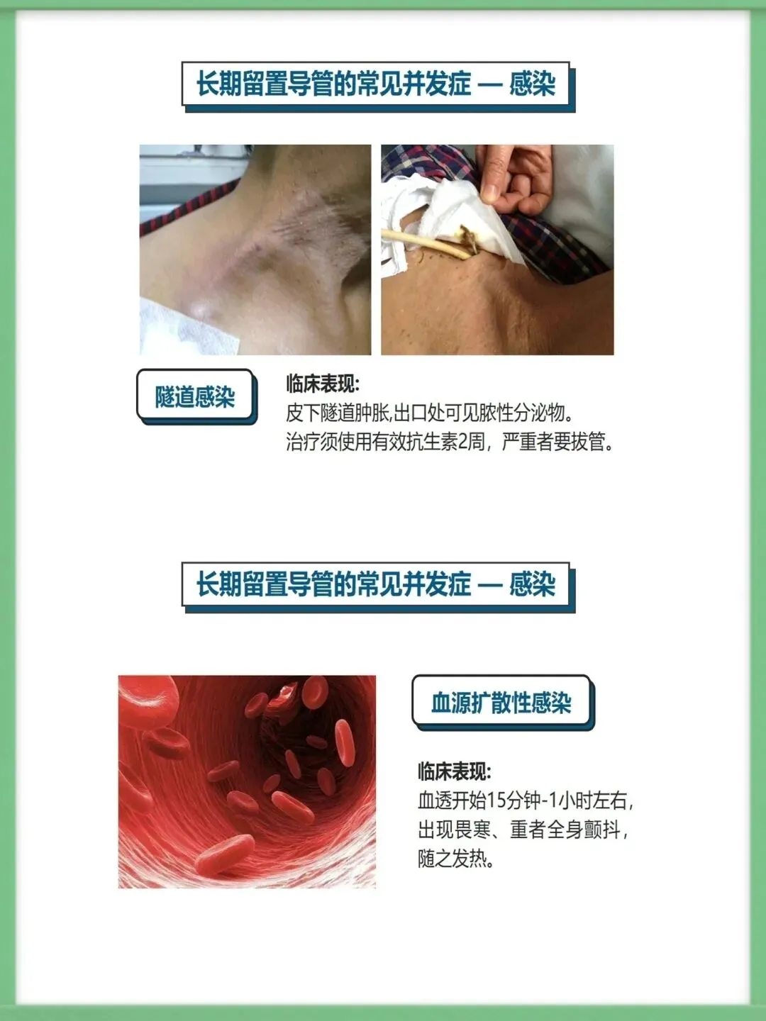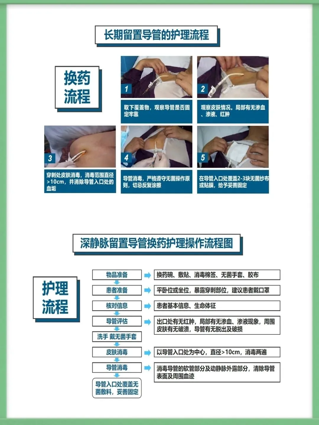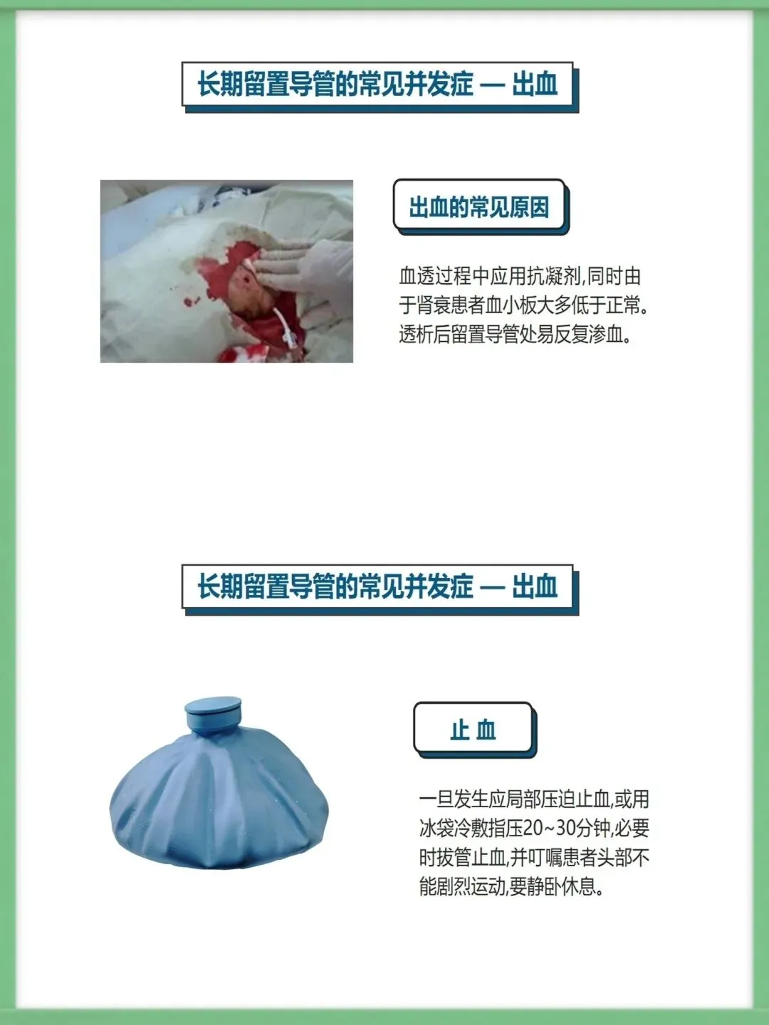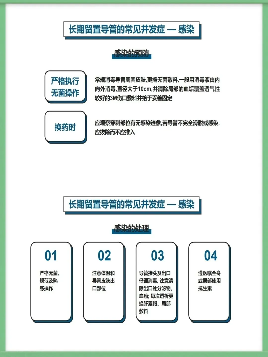 各位同仁,大家好。血液透析是肾功能衰竭患者核心替代治疗手段,血管通路为其“生命线”,带涤纶套深静脉留置导管作为永久性通路,兼具安全、速效、操作简便等优势,是临床重要选择。长期管相较临时管生物相容性更佳、感染率更低、血流量更高,颈内静脉为其首选置管部位。长期留置导管护理需严格遵循标准化流程,换药时需先评估导管固定及皮肤状况,再以>10cm范围无菌消毒,妥善覆盖敷料;上机与下机操作全程无菌,规范完成抽液、注药、封管等步骤,精准把控肝素与生理盐水使用剂量。导管护理的核心是并发症防控,临床常见感染、血流不畅、血栓、出血四类问题。感染分出口部、隧道、血源扩散性三类,需通过无菌操作、定期换药预防,确诊后针对性使用抗生素,严重时拔管。血流不畅多由导管塌陷、扭曲、贴壁或血栓导致,前三者可通过调整泵速、体位及导管位置缓解,血栓需在医生指导下采用尿激酶溶栓,无出血倾向者方可实施。出血因抗凝剂使用及血小板异常引发,以局部压迫冷敷止血为主,必要时拔管。规范的无菌操作与标准化护理是延长导管使用寿命的关键,抗生素联合肝素封管、溶栓与抗凝联合治疗,能有效降低并发症发生率。长期留置导管作为安全有效的血管通路,精准护理可为血液透析顺利开展筑牢基础,保障患者治疗效果与安全。