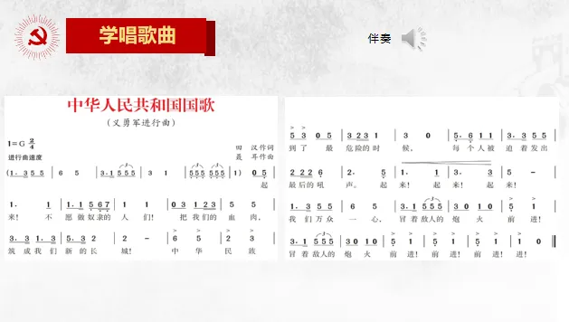 课题:《中华人民共和国国歌》《没有共产党就没有新中国》