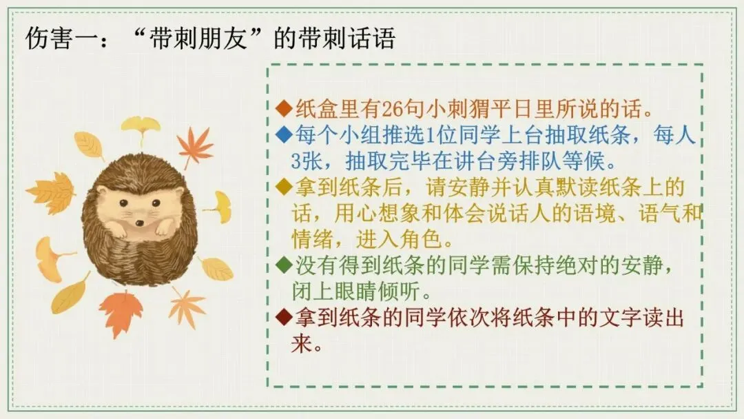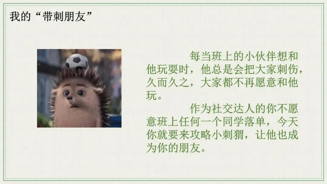 学生说话伤人,不是因为他们“坏”,而是因为他们“不会说”。这份《带刺的朋友》主题班会PPT,用“低情商vs高情商”话术对比,手把手教学生“软化自己的刺”。