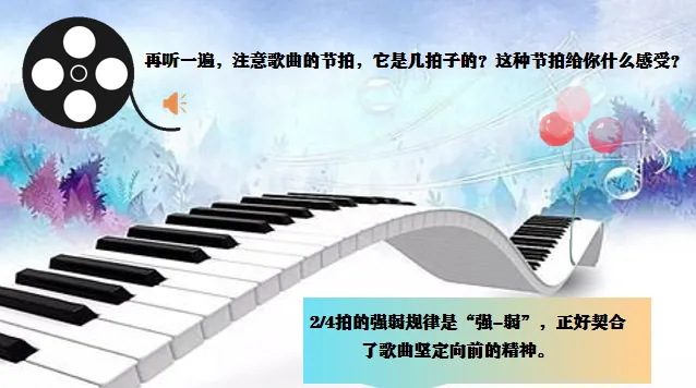 通过学唱队歌,感受2/4拍进行曲的音乐风格